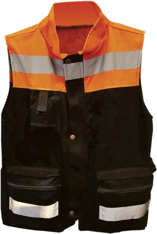 Chaleco Ejecutivo bicolor en gabardina en combinación de dos tonos, con un forro interno de malla, con cierre y botones al frente.