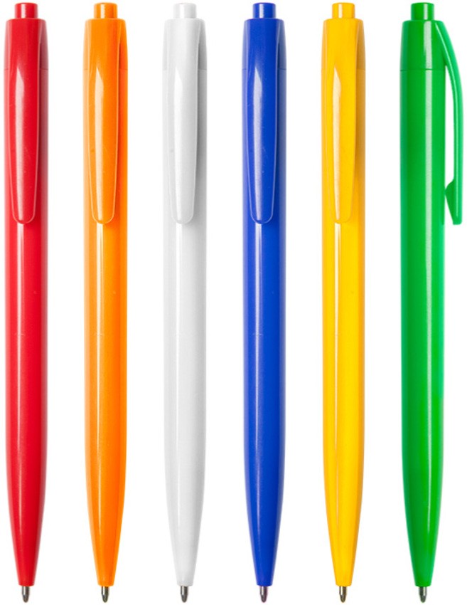 Plástico. Lápiz pasta con cuerpo plástico de color con pulsador. Pasta azul.