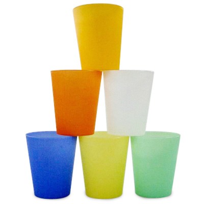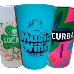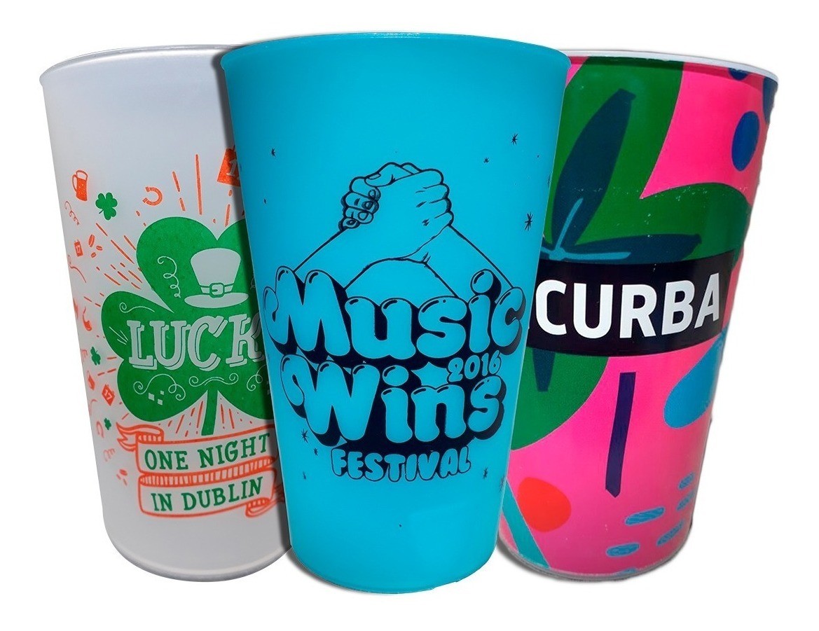Amplia gama de vasos ecológicos reutilizables y sostenibles fabricados en polipropileno, el plástico menos contaminante en el posible caso de que acaben siendo un residuo.